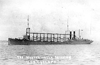 This view shows a third mast aft and is also the first to show the ship with wireless.