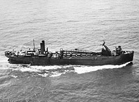 The former USS Jason photographed on 26 May 1943 by a blimp based at Weeksville, North Carolina, after her conversion to a commercial bulk carrier.