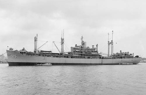 Class Notes:FY 1942. On 9 May 42 the Auxiliary Vessels Board noted that the Maximum War Effort Program included 13 tenders, 2 ammunition ships, and 14 oilers to be built in 1943-45. These included nine tenders (AD 22-25, AV 14-17, and AS-23) to be converted in 1943 from C3 hulls. The Maritime Commission initially estimated that it could build and convert the 4 AD and 4 AV at Western Pipe, San Francisco, and the AS at Seattle-Tacoma, Tacoma, but the Tacoma yard was soon shifted from Maritime Commission to Navy control for construction of escort carriers (AVG). By June 1942 the MC was no longer willing to divert nine C3s from its merchant ship program, and on 20 Jul 42 it suggested the Navy built the tenders at Tacoma following the 1943 AVG program. On 6 Aug 42 VCNO ordered the construction of the nine tenders at Tacoma, where they were to replace 9 of the 24 AVG's in the 1944 program. On 27 Aug 42 BuShips informed VCNO that to expedite the tender programs it planned to build only five of the tenders at Tacoma and had arranged to build the four destroyer tenders at Western Pipe's San Pedro yard, which the Navy controlled. There they were to be duplicates of CASCADE (AD-16) with minor modifications, permitting use of about 90 percent of the working plans for CASCADE. However this Western Pipe yard was reassigned to the Destroyer Escort program, DE 739-762 being ordered there on 9 Nov 42, and on 24 Oct 42 BuShips recommended to VCNO that, with the expansion of the escort carrier program, the four destroyer tenders be indefinitely deferred or even cancelled. VCNO rejected this recommendation on 3 Nov 42, noting that under current plans the Navy would have 509 destroyers and only 14 destroyer tenders in service in 1945. On 20 Nov 42 the Navy received a proposal from another San Pedro yard under its control, the Los Angeles Shipbuilding and Drydock Corp., to build four destroyer tenders and the Navy awarded the contract on 2 Dec 42.
