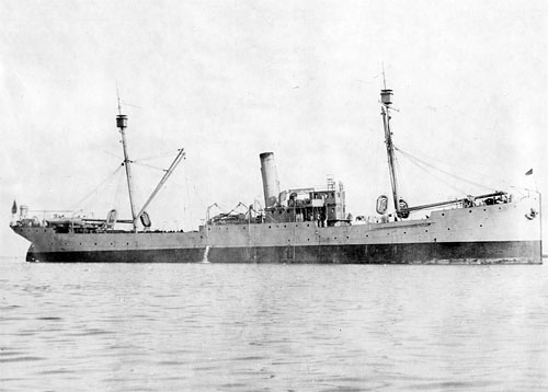 On 1 Aug 14 NANSHAN was placed in full commission with her first Navy crew. Before and during World War I she carried out supply missions throughout the eastern Pacific, including Alaska, Hawaii, and Mexico. In early 1918 she made a round-trip supply voyage to Norfolk, Virginia and in 1919 conducted an emergency mission to bring urgently needed food to Kodiak, Alaska and the Pribiloff Islands. NANSHAN was assigned as target repair ship in the Pacific on 5 Dec 19 and was fitted out for this purpose at the Puget Sound Navy Yard in early 1920. She was designated AG-3 when the Navy's standard hull classification scheme was implemented on 17 Jul 20.