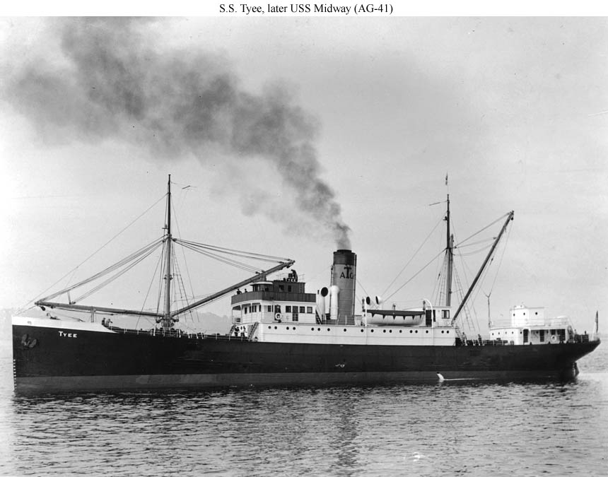 The future USS Midway (AG-41). She is probably shown here soon after being acquired and renamed Tyee in 1939 by the Alaska Transportation Co.
