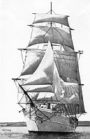 Although often called a brig, she was actually a hermaphrodite brig with square sails only on the foremast.