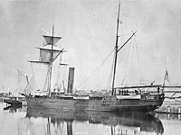 Pierside with sails spread, possibly in an early photograph.