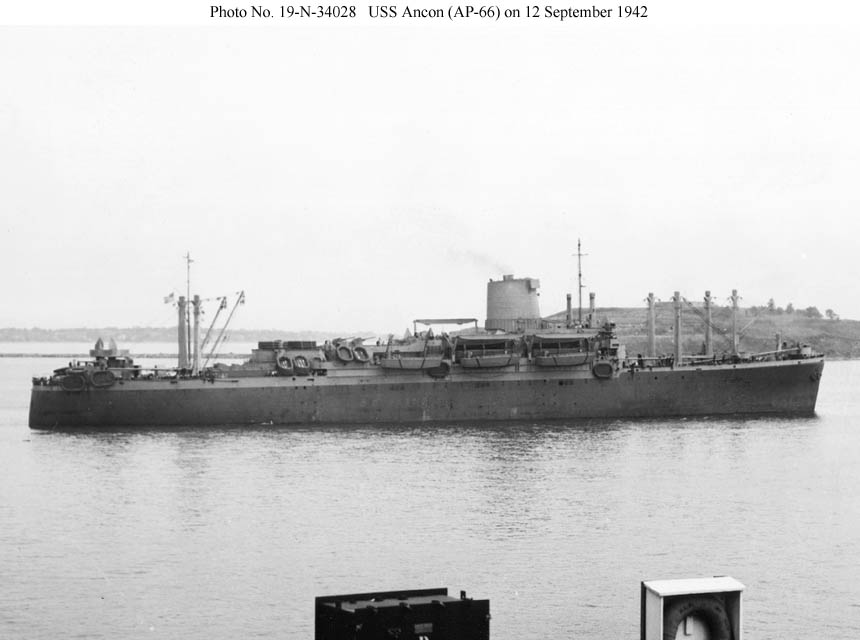 Photographed by the Boston Navy Yard on 12 September 1942 fitted as a combat loaded transport.