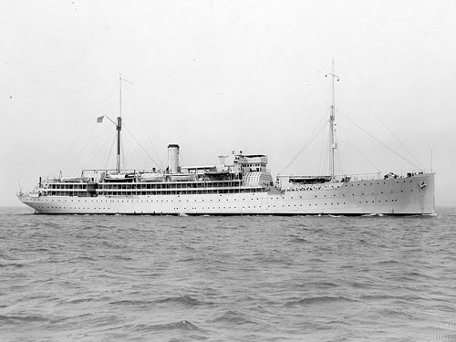 Although HENDERSON and RELIEF were overall very similar in appearance, three features made it easy to distinguish between them. The hospital ship lacked the heavy boom on the after mast that the transport used to handle her numerous boats. On the other hand the hospital ship had immediately under her bridge an irregularly shaped structure with many round windows that was her main operating room. (The windows were plated over in 1941.) The most obvious difference was that the transport was painted gray and the hospital ship white. RELIEF was completed with Geneva Convention markings, including a broad stripe the length of the white hull and red crosses on the hull side amidships and on the smokestack, but on 10 Nov 21 SecNav ordered that these markings should be removed from all Navy hospital ships and not restored except in time of war and after the ship was duly designated a hospital ship in accordance with the 1907 Hague Convention. This followed decisions earlier in 1921 that line officers should command hospital ships instead of the Medical Corps officers who had commanded them since 1908 and that hospital ships should, in time of peace, be administered in all respects as Navy auxiliary vessels.