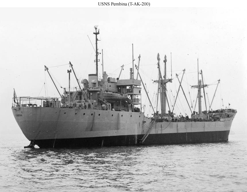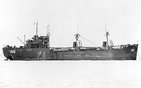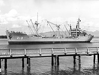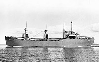 This ship was built as USS Duval (AK-177) but was cancelled at the end of the war and completed as a merchant ship. She was converted to a non-self propelled power barge between 1952 and 1954. She was given a protective cellular coating to insulate her against cold Arctic weather.