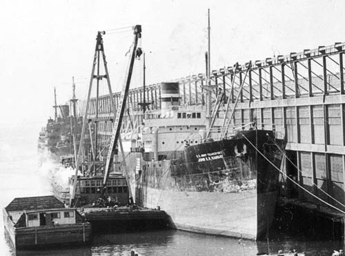 USAT JOHN R. R. HANNAY, ex merc. WAUKEGAN 5 Feb 41 (ID-4399, completed 14 May 19). From Army to WSA (NDRF) as WAUKEGAN 10 Aug 46. To buyer 21 Apr 47, scrapped by 19 Sep 47. |