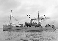 The ship, which was renamed in mid-1941, is painted gray in this wartime photograph. Note the absence of armament.