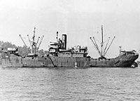 Her rig was modified during her Navy conversion. As a civilian-manned Navy-owned ship she was technically a U. S. Naval Cargo Ship (USNCS).