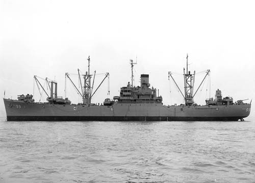 Ex AK-69 1 Feb 43. Served in MSTS as a commissioned naval vessel from 1 Oct 49 to 15 Sep 50. In USN reserve 1958-60. To NDRF 23 Aug 60, stk. 1 Jul 61, to MA 1 Oct 62. From MA 19 Aug 65, to AE-30 1 Nov 65, converted by Todd Pacific Shipyards, Seattle, Wash., and recomm. 19 Aug 66. To NDRF 19 May 71, to buyer 26 Dec 73. |
