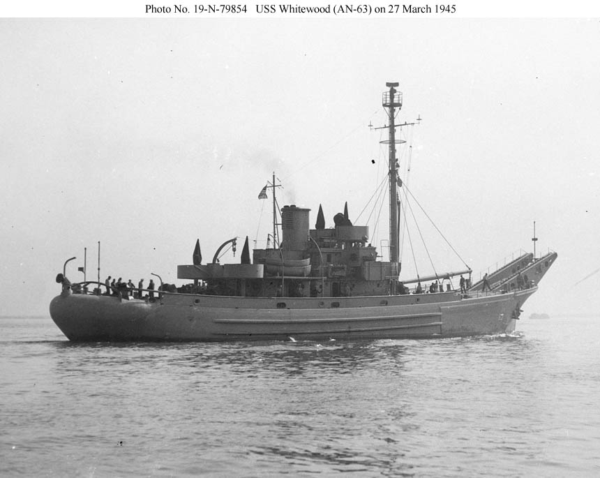 This image clearly shows the original configuration of the class, with a 3"/50 gun forward of the bridge, two 20-mm guns on top of it, and a searchlight platform (empty in this image) just behind it.