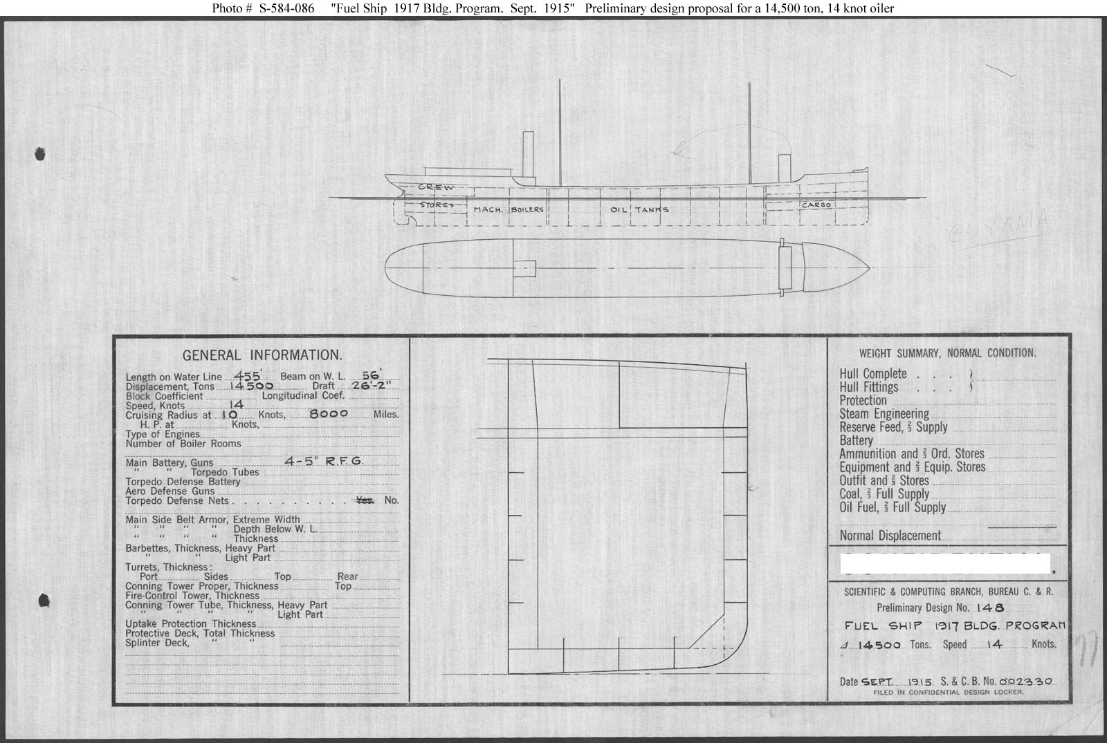 "Fuel Ship 1917 Bldg. Program" ... September 1915