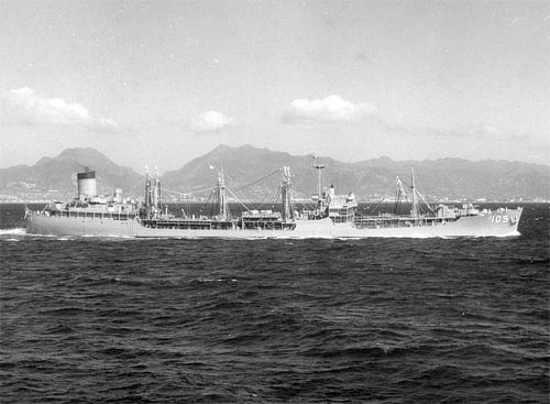Jumboized at the Puget Sound Bridge and Dry Dock Co., Seattle, Wash., 1963-64. Decomm. and to MSC 13 Aug 75. Out of service 2 Oct 91, to NDRF 19 Nov 91. Withdrawn from NDRF 14 Nov 95 for delivery to Navy buyer. |