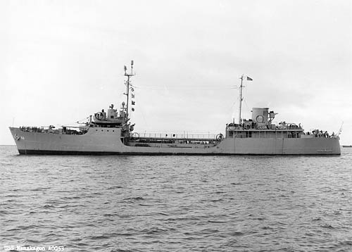 In USN reserve 1958-60, to NDRF 25 Feb 60, to MA 30 Jun 60, stk. 1 Jul 60. From MA 31 Aug 65. Sold for operation to Mid- Pacific Sea Harvesters, Ltd., to buyer 15 Jan 79. Later derelict in Howe Sound, British Columbia, then lost under tow to scrapping in Far East. |