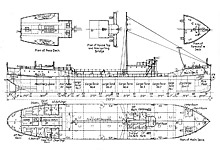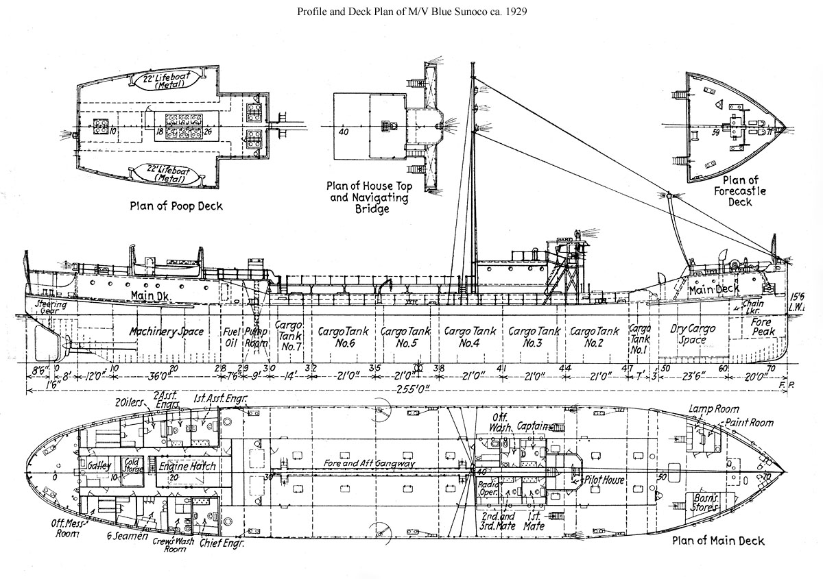Profile and deck plan of the ship as designed and built in 1928-1929.