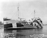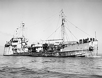 Although this ship was delivered by her builder and commissioned in May 1944, she did not complete fitting out at the New York Navy Yard and report for shakedown until August 1944.