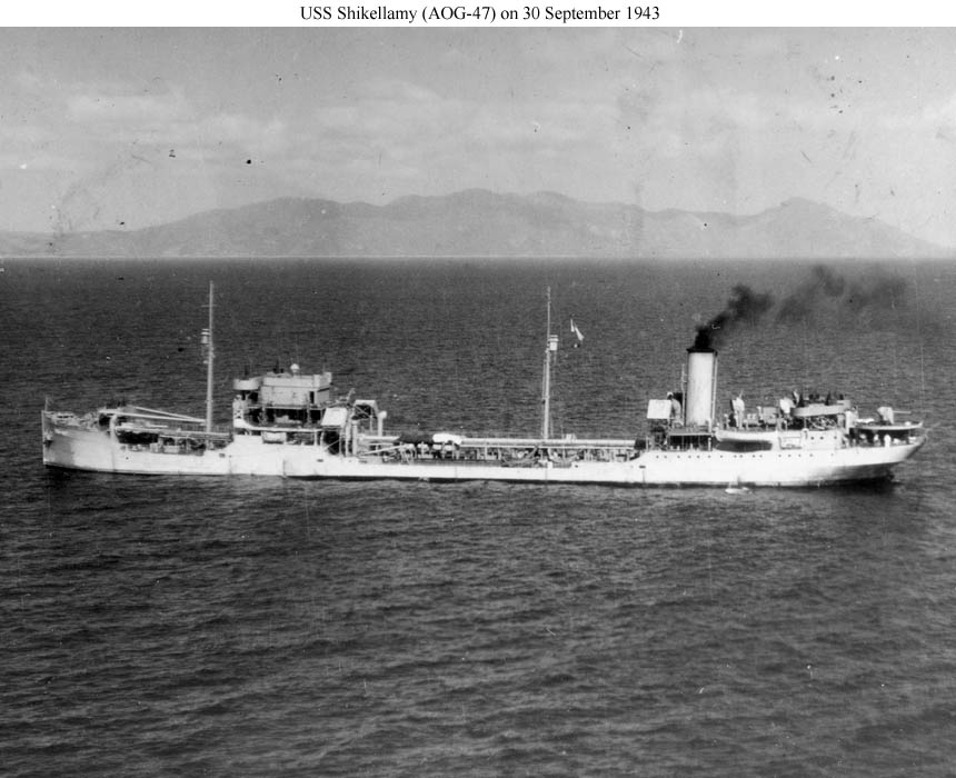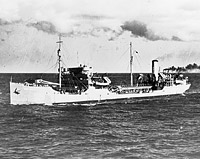 This medium-sized tanker was initially selected for acquisition to fulfill a requirement from General MacArthur but her sister ship S.S Daniel Pierce was soon substituted and became USS Shikellamy (AOG-47). This U.S. Coast Guard photo shows E. R. Kemp near an American port on 14 July 1943.