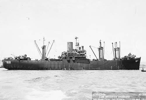 Ex merc. GOLDEN CITY (completed 31 Dec 43). Converted for WSA by Matson Navigation, San Francisco, Cal. Merc. GOLDEN CITY 1948. Scrapped 1973 as CORTLAND. |