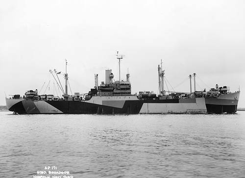 FY 1944. On 30 Oct 43 the Auxiliary Vessels Board noted that CinCPac had recently requested that 11 Navy-manned Liberty cargo ships (AKs) be given facilities for transporting about 1,000 troops on short hauls in order to relieve regular transports now being retained in the Third Fleet area for that purpose. The Board identified 11 candidates for this conversion (AK 114-123 and 129), but subsequently WSA agreed to make five C-type cargo vessels available in lieu of five of these conversions (AK 120-123 and 129). On 23 Nov 43 the Board recommended that five C2-type vessels or equivalents be acquired after conversion by WSA to carry troops, that they be manned by Navy crews as soon as possible, and that as their operations permitted they be made available for improvements and alterations to bring them up to Navy standards as APs. The APs were designated AP 171-175. The Navy ferried STORM KING and STARLIGHT, both MC C2-S-AJ1 cargo ships, from their builder in North Carolina to New York, where it returned them to WSA for conversion by the Bethlehem Steel Co., Staten Island, N.Y.