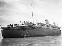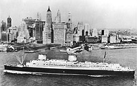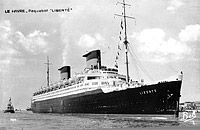Docking at Bremerhaven on 24 March 1946. This ship returned to sea in 1950s as the French luxury liner Liberté.