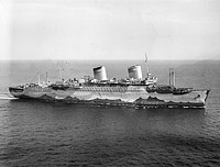 External conversion work accomplished beweenn 2 and 15 June included repainting the ship and hanging liferafts over the promenade deck. The armament has not yet been installed.