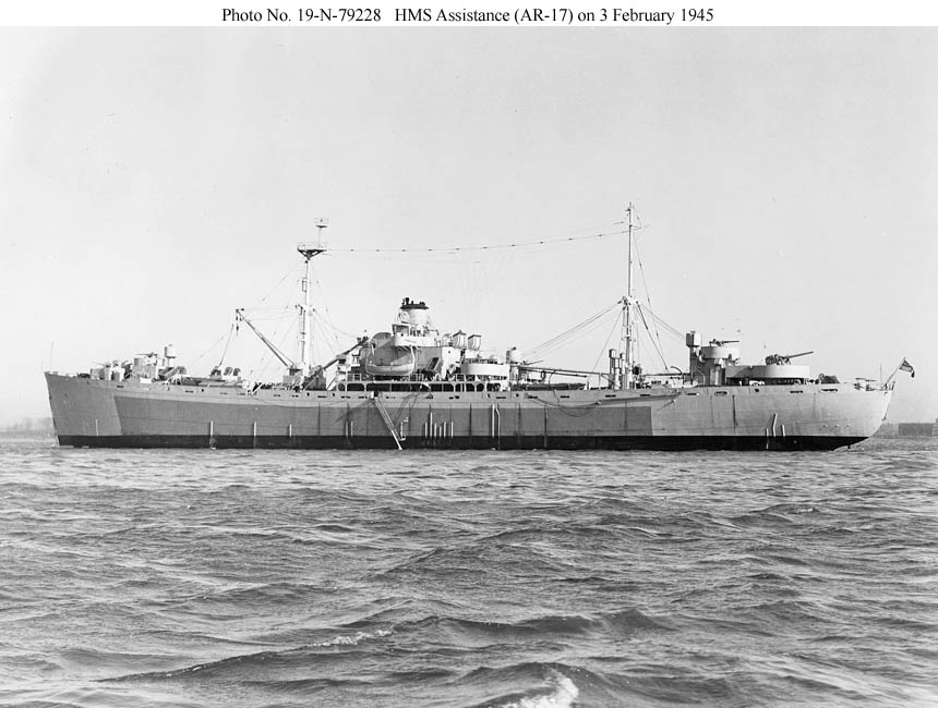 Officially 79.9 percent complete, she lacks nearly all her smaller fittings, including her rig, because most of these would have been removed during conversion. All of the ships of the AR-17, ARG-2, and ARV-1 classes were delivered from their builders in this condition.