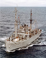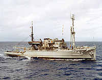 Her two 40mm gun mounts and their tubs have been replaced by a single 40mm gun on the centerline on the signal bridge.