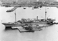 This photo was published in the 8 November 1945 issue of the Shanghai-based China Daily, which noted that although the ship's official designation was that of repair ship she was now serving as the Service Squadron's administrative headquaters.