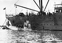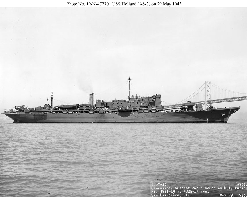 A chain was passed arouond the bow of the submarine and the port hook in Holland's clipper bow then lifted it. The event, possibly a test of the procedure, took place between the tender's commissioning in June 1926 and S-4's departure for the Atlantic in February 1927.