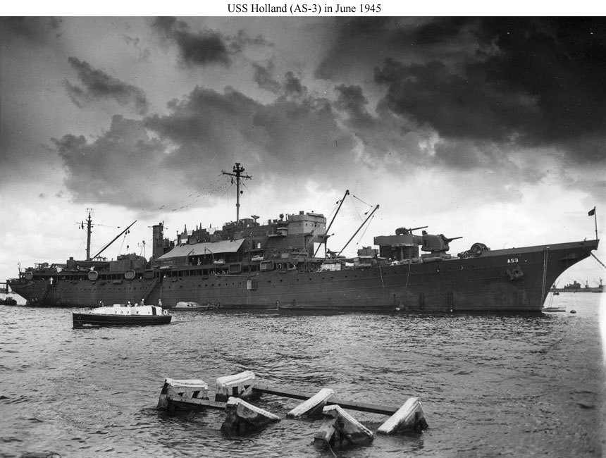 In Apra Harbor, Guam, in June 1945 as flagship of Commander Submarine Force Pacific.