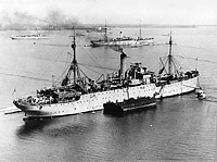 In San Pedro harbor during the second half of 1921 with six "R"-class submarines alongside.