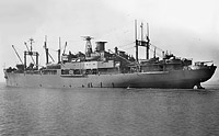 Note the row of portholes running the length of the ship on the level below the main deck, where accommodations and repair facilities were installed.