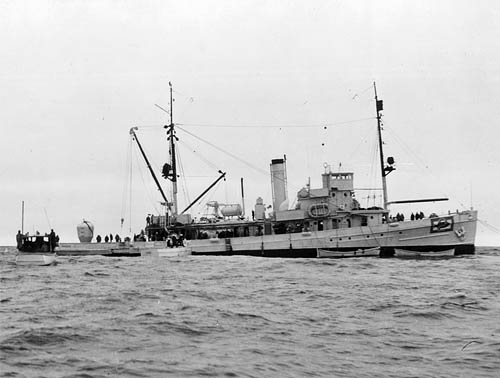 Ex AM-22 12 Sep 29. Ordered by the Navy Department on 6 Sep 21 to be equipped as a salvage vessel for duty on the West Coast. Decomm. 14 Apr 22, converted by the Charleston, S.C. Navy Yard, recomm. 5 Mar 23, and assigned to Commander Submarine Divisions Pacific. Her submarine support capabilities were enhanced at Pearl Harbor in 1926. To buyer 2 Mar 48. |