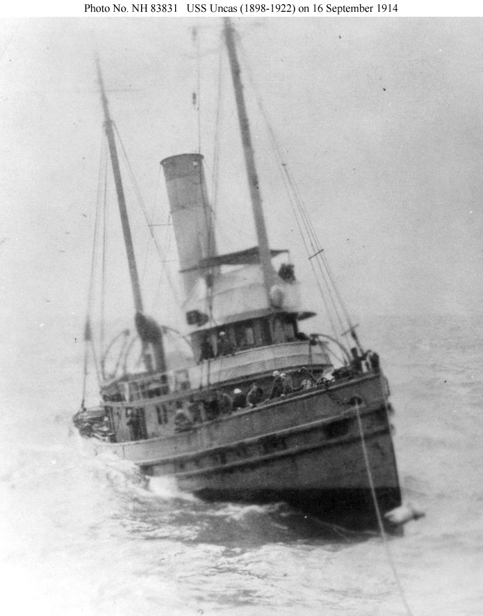 Transferring mail to USS Texas (BB-35) in heavy weather on 16 September 1914.
