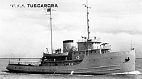 Although she is now a service craft, her motor whaleboat still bears her original designation of AT-77.