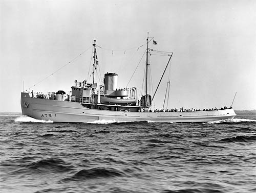FY 1942 (ATR 1-40), 1943 (others). On 12 Sep 41 the chief of the Bureau of Ships sent a long letter to the Chief of Naval Operations on the "need of rescue tugs to tow in disabled vessels." He stated that it was imperative in time of war to salvage, as far as possible, every ship which had been placed in peril of sinking by reason of damage incurred through enemy action or resulting from marine casualties. This could be done only if it was possible to take damaged vessels in tow as soon as possible after the damage had been inflicted, meaning that suitable rescue vessels had to be stationed at those points along the coast where casualties to shipping could be anticipated. He noted that, for use in rescue tug services, ships needed good seaworthiness, sufficient power (1,500 HP or more) to tow large vessels at sea, proper towing arrangements (a towing engine or equivalent system), a long radius of action, firefighting equipment, and a basic supply of salvage materials and pumps, though far less extensive than that found on the dedicated salvage vessels then being operated by BuShips. Implicitly acknowledging that these recommendations were based heavily on British experience, he noted that the British then had more than 30 tugs engaged in their rescue tug service and that the number available had never been sufficient to meet all of the needs for rescue tug assistance. The British were then building more rescue tugs, and 14 (BAT 1-14) were being built in the United States under the Lend Lease act. The British had never had suitable tugs available in sufficient number to assign any to convoys, and the overall shortage of tugs meant that many intended for rescue use were diverted to other services. Although CNO on 8 Oct 41 rejected the main recommendation in this letter, that the Navy establish a Rescue Tug Service similar to the one in the U.K., the arguments in the letter were probably those that motivated the subsequent procurement of large numbers of rescue tugs for the Navy's operating forces. On 19 Jan 42 CNO directed the construction of ATR 1-40 as part of the U.S. Navy's Maximum War Effort (1799 Vessel) Program, and on 5 Aug 42 VCNO directed the construction of ATR 50-89 using tonnage still available in this program.