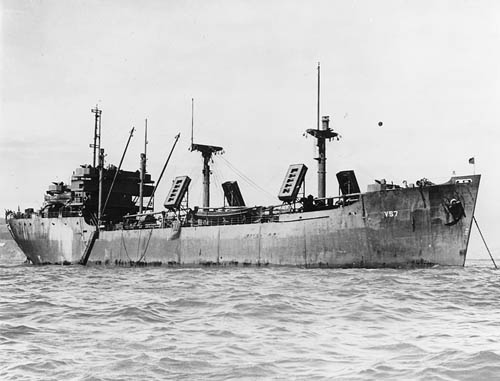 On 27 Feb 45 CNO decided that AK-185, AK-199, and probably AK-206 would be used as Aviation Supply Ships. These ships were among the many of this type built on the Great Lakes and transferred by the MC for reassembly at shipyards in the Gulf area--they were nearly ready for delivery to the Navy when selected. On 9 Mar 45 CNO recommended the three ships be reclassified AG 92-94, and on 12 Mar 45 SecNav approved the recommendation. (Both dates are used in Navy records for the reclassification.) The ships became AVS 5-7 when the new AVS designation became effective on 25 May 45.