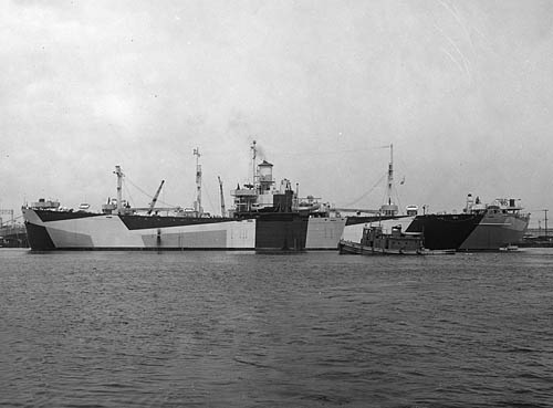 Ex merc. LEON GODCHAUX. Ex IX-130 4 Feb 44. Ferry commission 17 Feb 44-10 Apr 44. Converted by the Naval Operating Base, Key West, Fla. after drydocking at Tampa. Supported the Bikini atom bomb tests in July 1946. Merc. LEON GODCHAUX 1947 (MC). Repaired while inactive under the Emergency Ship Repair Program 27 Jun 55-18 Aug 55. To buyer 19 Feb 68. |