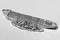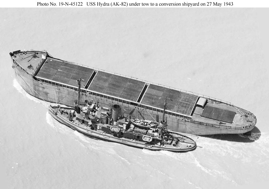 A U.S. Navy sister of the four BAK's being towed from her builder's yard at Camden, N.J., to a shipyard at Baltimore, Maryland, on 27 May 1943 for completion and conversion.