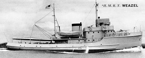 Completed 9 Apr 43, delivered the next day and trf. to UK under Lend Lease as WEAZEL. Returned to U.S. custody 11 Mar 46. Sold by FLC 17 Sep 46 to BOSEY. Merc. MING 106, then MING 306, 1946, deleted 1953 (lost 1949?). |