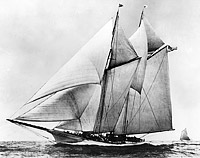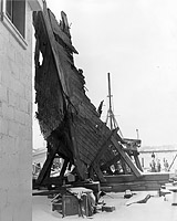 The remains of the historic yacht at the Annapolis Yacht Yard after a snow-covered shed collapsed on her in late March 1942.