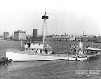 Hauled out circa October 1949 to begin conversion to the menhaden fishing vessel B. O. Colonna.