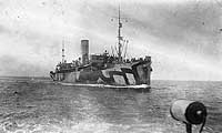 Photo #: NH 43542 USS Pastores (ID # 4540) Just outside Quiburon Bay, France, in 1918. She is being met by USS Piqua (SP-130), from which the photograph was taken. Built in 1913, Pastores had Navy service in 1918-1919 and again (as AF-16) in 1942-1946. U.S. Naval Historical Center Photograph. Online Image: 79KB; 740 x 470 pixels |