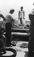 Crew members relaxing topside, circa 1933-1934, probably while