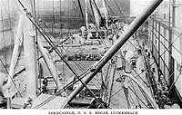 Halftone reproduction of a photograph looking aft from the ship's