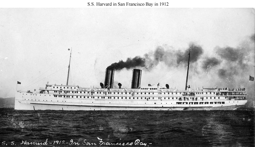 Photo #: None S.S. Harvard (American coastal passenger ship, 1907) In San Francisco Bay in 1912. Source: Shipscribe. |