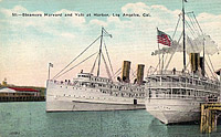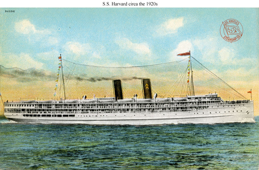 Photo #: None (color) S.S. Harvard (American coastal passenger ship, 1907) Shown after being reconditioned in 1920-1921 in a publicity post card for her owner, the Los Angeles Steamship Co. The same image was probably used on cards for both ships. Source: Shipscribe. |