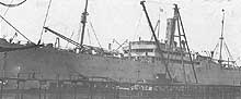 USAT Amphion (which later became USS Amphion) is partially visible in the right background of the following photograph of another ship: