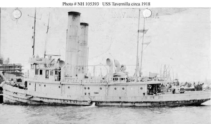 Photo #: NH 105393 USS Tavernilla (ID # 3000) Photographed circa 1918 with her sister USS Gorgona (ID # 2164) alongside. U.S. Naval Historical Center Photograph. Online Image: 58KB; 740 x 435 pixels |