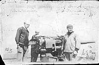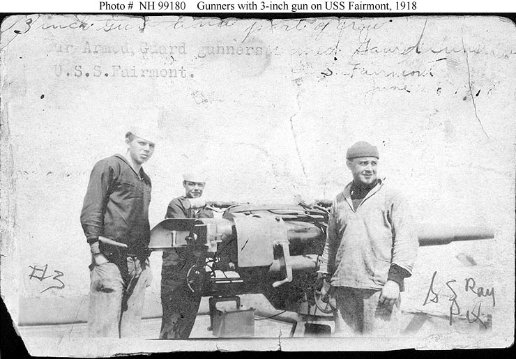 Some of the ship's gunners pose by her forward (three-inch) gun, 28 June 1918.